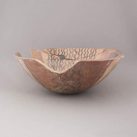 Contenedor de uso doméstico, de forma simétrica, no restringida y de perfil simple. Presenta cuerpo elipsoide horizontal, base plana-cóncava, borde recto -directo y labio plano. El tratamiento de superficie es pulido y pintado en negro sobre crema y rojo engobado por ambas caras. Se encuentra decorado por exterior con una banda circundante dispuesta bajo el borde de motivo zig-zag, y por interior, con un par de líneas perpendiculares entre sí con motivo de triángulo con apéndices y líneas paralelas oblicuas. También es posible apreciar huellas de uso relativas diversos grados de erosión tanto en la superficie exterior como interior, mayormente en el sector de la base.