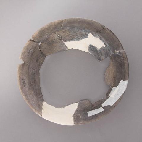 Contenedor de uso doméstico, de forma simétrica, no restringido y de perfil compuesto. Presenta cuerpo inferior esférico y superior cónico invertido, ausencia de base, borde recto y labio redondeado. El tratamiento de superficie es café alisado por el exterior y café pulido por el interior. También es posible apreciar huellas de uso relativas a la exposición al fuego con hollín en parte del cuerpo, así como erosión y microastillamiento en el borde.