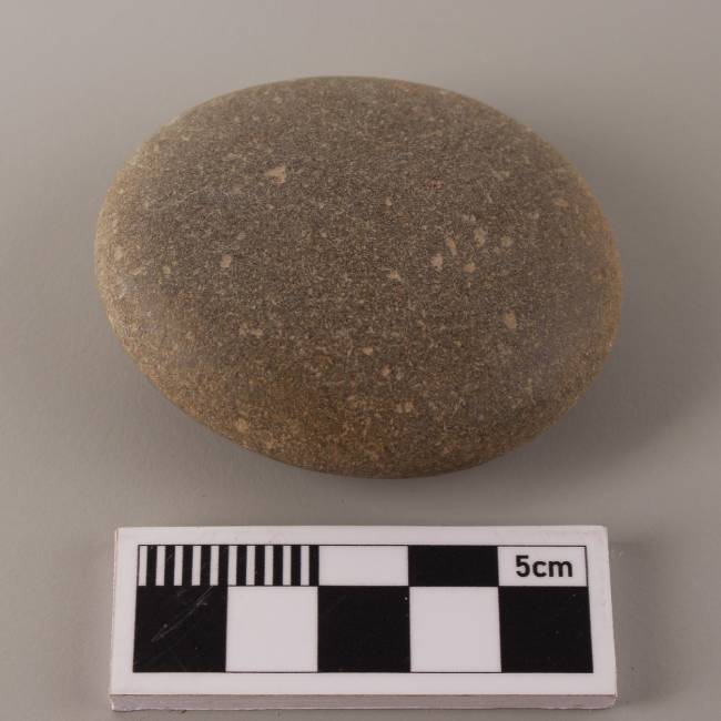 Guijarro lítico de ígnea porfídica, de forma ovalada, perfil curvo y levemente recto en caras anterior y posterior. Presente en fosa de individuos 126 (adulto), 132 (adulto) y 134 (adulto).