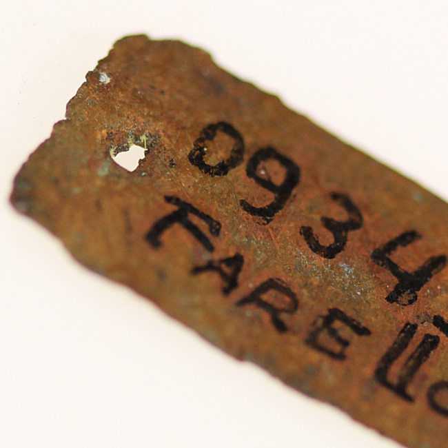 Objeto ornamental correspondiente a un adorno de forma rectangular laminado. En su superficie presenta dos orificios perimetrales, uno en cada lado del objeto.