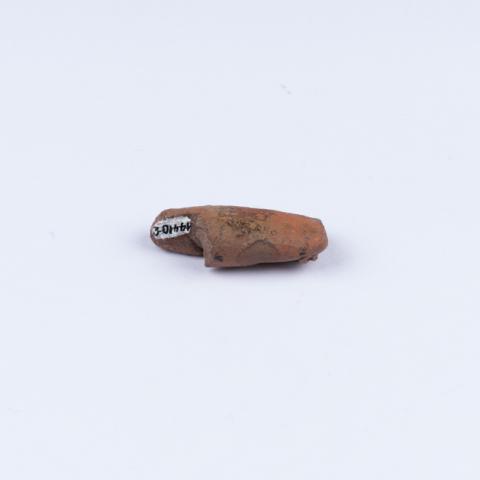 Objeto de uso doméstico y/o ritual. Figurilla antropomorfa de forma cilíndrica y contorno recto. Representa un cuerpo de pie, indicando rasgos esquematizados en rostro como ojos, nariz y boca. Hacia la sección inferior se observa la diferenciación de dos volúmenes representativos de las piernas. Elaborado en arcilla, es de color marrón y superficie alisada.