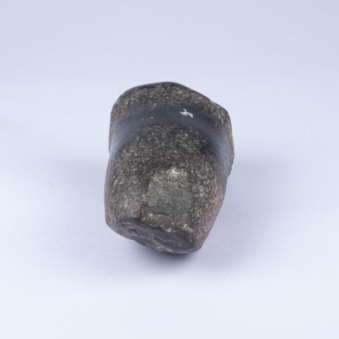 Utensilio utilizado para hacer fuerza de percusión contra otro objeto o material. Tiene forma tronco-cónica, con uno de sus lados más apuntado y de terminación biselada. La terminación es lisa y rugosa en sectores y tiene colores negro, marrón y gris oscuro.