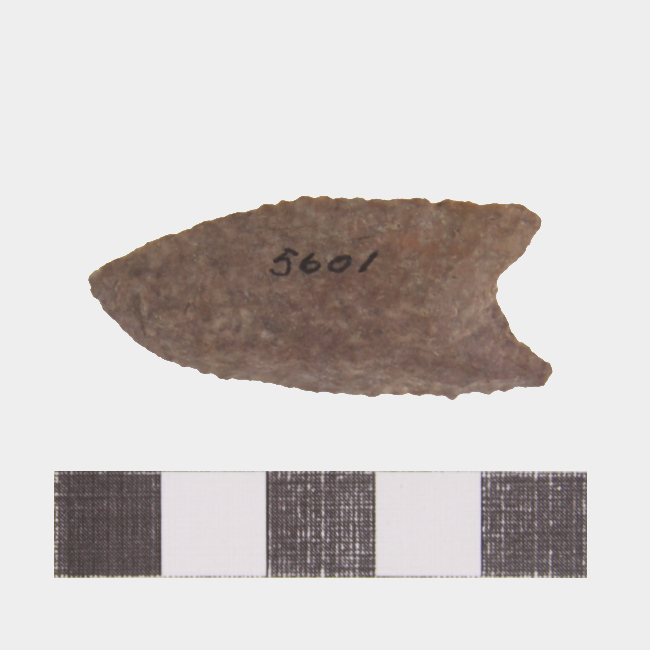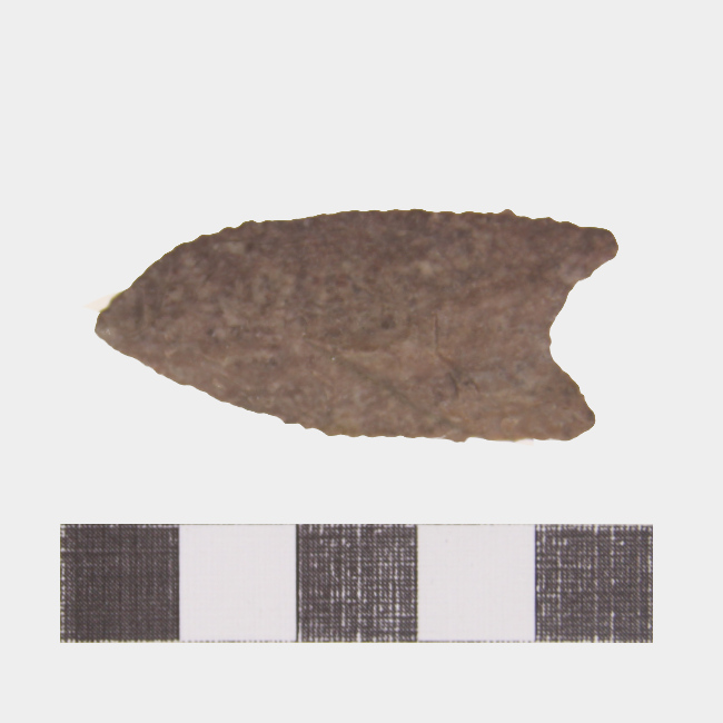 Objeto de uso doméstico de talla bifacial de forma lanceolada apedunculada, de base cóncava y sección biconvexa. Elaborado en materia prima de color marrón.