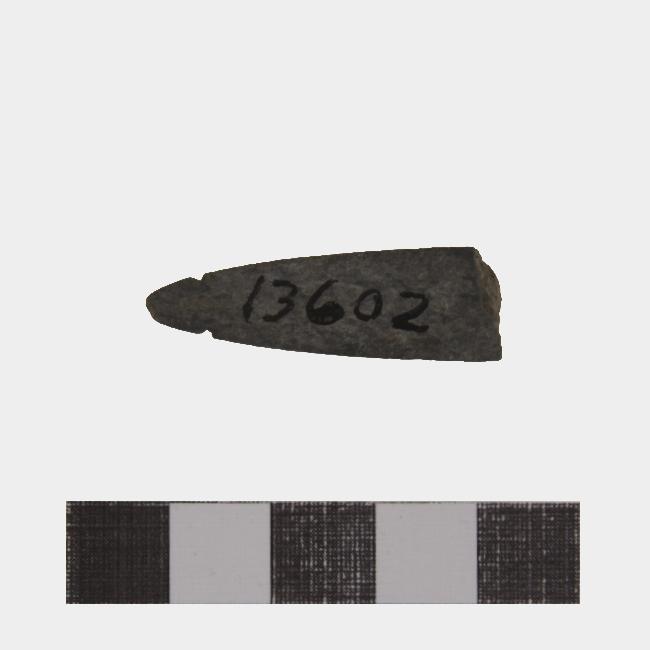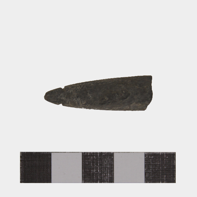 Objeto de uso doméstico alargado de perfil ligeramente curvo, extremo aguzado romo y de sección transversal ovoidal. Tanto su extremo proximal como el distal se presentan fracturados.