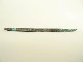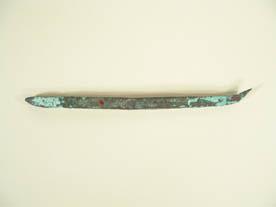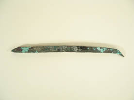Objeto de uso doméstico de forma alargada y aguzado en un extremo, de sección rectangular. Podría haber sido usado como instrumento para perforar, grabar y/o raspar. También como preforma para generar otros instrumentos.