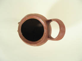 aprecia además, una distribución desigual del colorante rojo (técnica de engobe) ,preferencialmente en el cuerpo