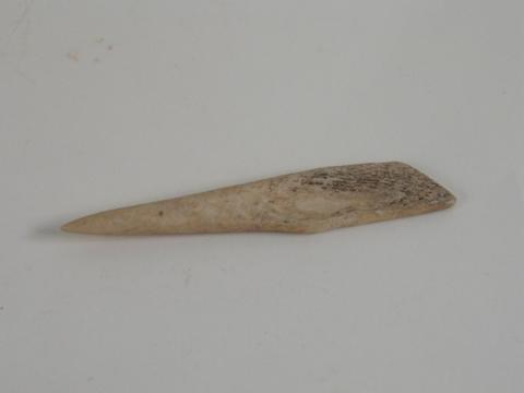 Espátula confeccionada en diáfisis de mamífero. Posee un extremo aguzado y otro, más ancho, plano y rectangular. Si bien su forma se corresponde a las espátulas para el consumo de alucinógenos, tiene un reducido tamaño.