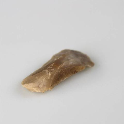 Objeto de forma rectangular alargada. Color rosa. Pieza de tipo doble confeccionado en una lamina, presenta retoque continuo en ambos extremos. Su función específica es la de raspado-presión.