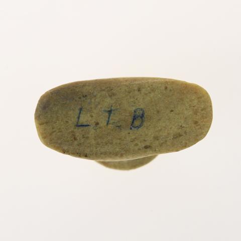Objeto ornamental de uso personal de forma cilíndrica corta y sección circular, elaborado en Combarbalita de color café claro. Presenta dos apéndices de sujeción laterales para permitir adherencia al labio inferior. En la literatura del área, este tipo de adorno ha sido definido como “Tembetá de botón".