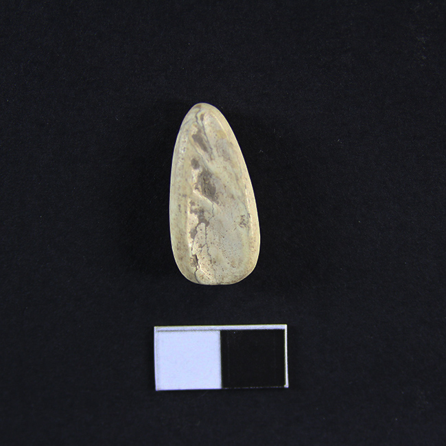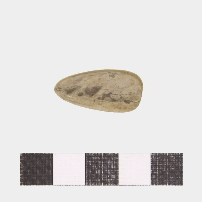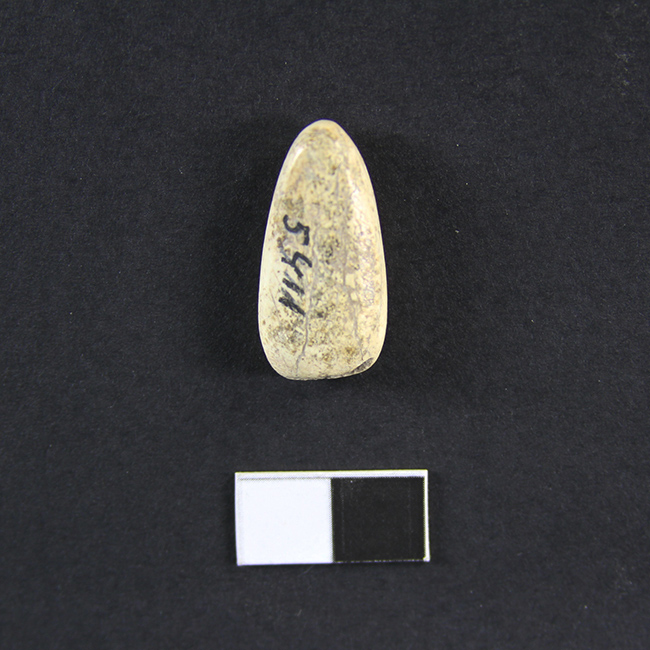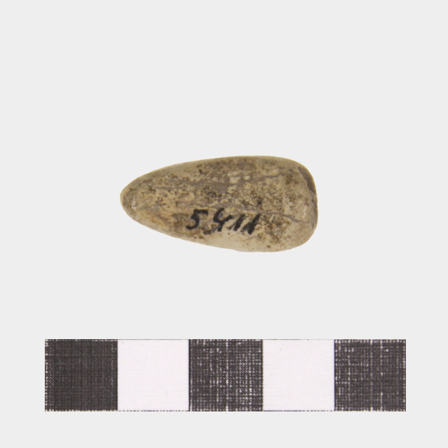 Objeto de funcionalidad indeterminada, de forma subelipsoidal y elaborado en hueso largo de mamífero. Presenta un extremo aguzado y su interior acanalado.