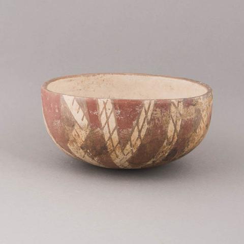 Continente o vasija semiesferoidal , no restringida, con base circular cóncava o hendida, su silueta o contorno sin punto angular o de quiebre y en un mismo sentido o dirección. Superficie tratada en la técnica de engobe, con pigmento colorante, ya sea por pintado o inmersión de la pieza. Su interior es blanco y muestra una guarda decorativa externa, próxima al punto de término ( labio-contorno), en fondo blanco con diseños geométricos diversos , en tonos negro y rojo.