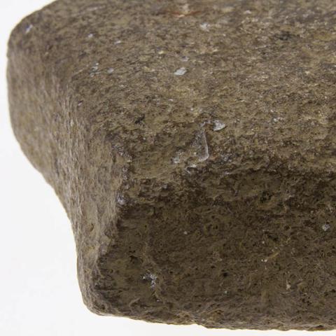 Objeto de uso ritual y/o doméstico de función desconocida. Presenta forma pentagonal de sección biplana, y se encuentra elaborado sobre un guijarro de andesita de color café. Posee dos caras formatizadas por alisado. El borde perimetral se encuentra formatizado por alisado.