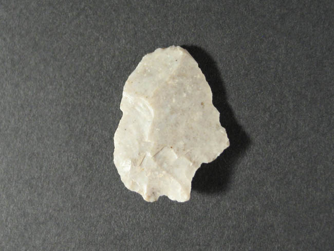 Objeto de uso doméstico de talla bifacial de forma lanceolada, de base redondeada y sección biconvexa. Elaborado en materia prima de color blanco. Presenta un lascado que puede indicar preforma de pedúnculo.