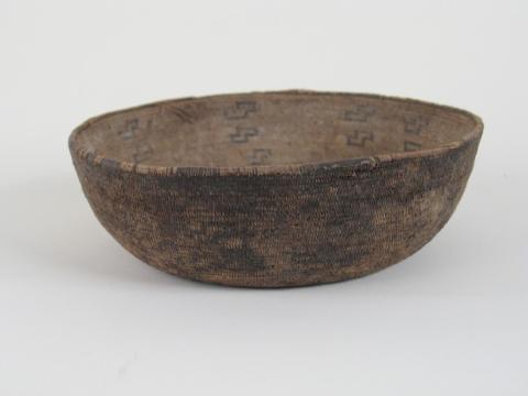 Recipiente de cestería. Forma hemisférica de paredes altas oblicuas ligeramente convexas y base planocóncava. Técnica de aduja o espiral para un manojo de fibras sin núcleo; tejido muy compacto; enlace "tipo 1": con densidad de 10 enlaces y 4 espirales por cm2; fondo de roseta (niemeyer y Schiappacasse 1963). El borde fue decorado con pintura negra y el cuerpo está decorado con figuras geométricas, decontorno negro. La figura es una especie de z formada por dos rectángulos escalonados. "Dicho motivo se repite 26 veces con cierta simetría. Se distribuye en dos agrupaciones de seis unidades cada una, una agrupación de cinco unidades y tres agrupaciones de tres unidades" según lo describen los mismos autores (Niemeyer y Schiappacasse 1963:132 y Lám.XXI, Figs. 2 y 5a, b y c).