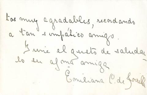 | Título: | Nota de la señora Emiliana C. de Zorrilla a don Eugenio Orrego Vicuña |