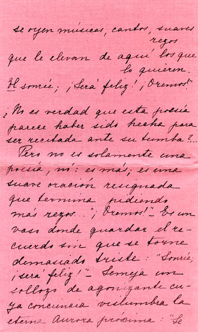 Escrita por Teresa Ossandón a Eugenio Orrego Vicuña, donde le da un saludo con mucho afecto y se compromete con sumo agrado a gozar de la lectura de la producción de su hermano Benjamín Orrego Vicuña, recopilada por él.